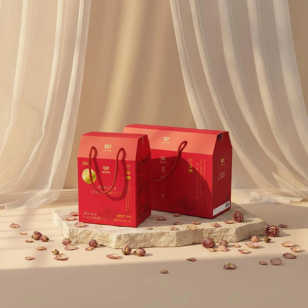 1. 濟州島獨有的紅海參: 濟州島紅海參是有5億年存活記載的海洋動物,被譽為“海洋人蔘”,在東北亞地區一直被用作高級滋補食材。尤其是稀有的紅海蔘是只能從韓國濟州深海地區採集到的特產物,與一般常見的青海參或黑海參相比,紅海參的皂角苷和膠原蛋白的有效物質成分含量更高,在抗菌抗炎和增加免疫力,促進皮膚細胞再生方面具有顯著的效能。